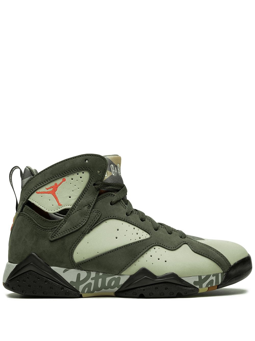x Patta Air Jordan 7 "Icicle" sneakers The Patta x Air Jordan 7 “Icicle” is the limited collaboration between the Amsterdam-based boutique and Jordan Brand. Known for their many coveted Nike Air Max collaborations, Patta teamed up with Jordan Brand for the first time in 2019 for two colorways of the Air Jordan 7. Following the “Shimmer” colorway released in the summer of 2019, this “Icicle” Jordan 7 followed in fall. Once again utilizing the original “Bordeaux” colorway for inspiration, the “Icicle” design switches from the brown and tan tones found on the “Shimmer” edition to earthy dark green and cream white hues. An Icicle nubuck upper with River Rock overlays contrast on the sleek sneaker. Patta branding is repeated along the midsole and a multi-colored outsole provides grip when used on-court. Imported Composition Calf Leather 100%
