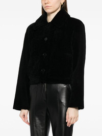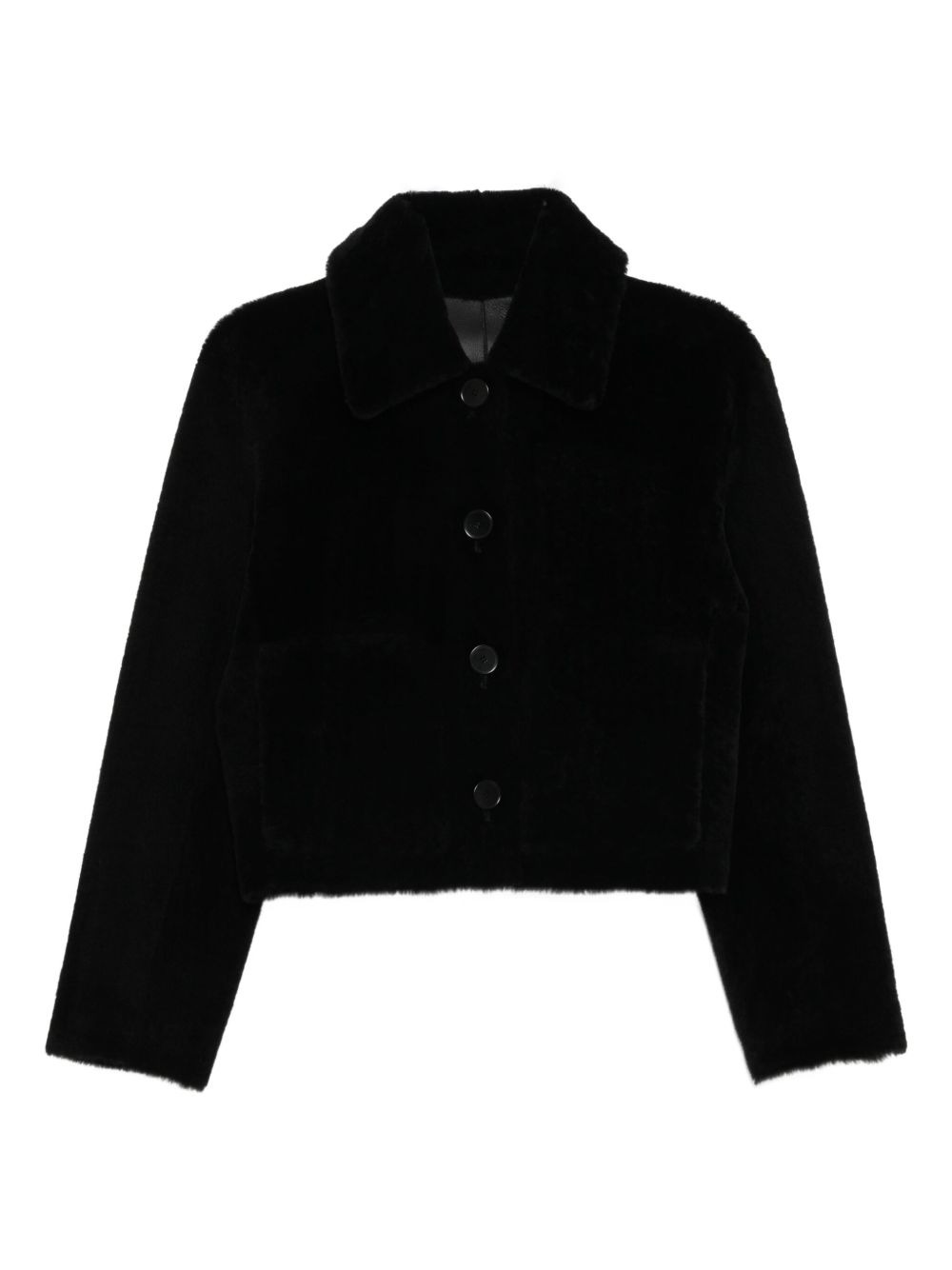 Alloway leather jacket Highlights - Black - Front button fastening - Two side inset pockets - Long sleeves Imported Composition Sheepskin 100% SIZE & FIT Model measurements Height 5 ft 10 in(1.77 m) Bust/Chest 30.31 in(77 cm) Hips 36.22 in(92 cm) Waist 24.8 in(63 cm) FittingInformation Designed to be unstructured, offering a loose fit throughout Firm shearling has a treated construction offering some durability