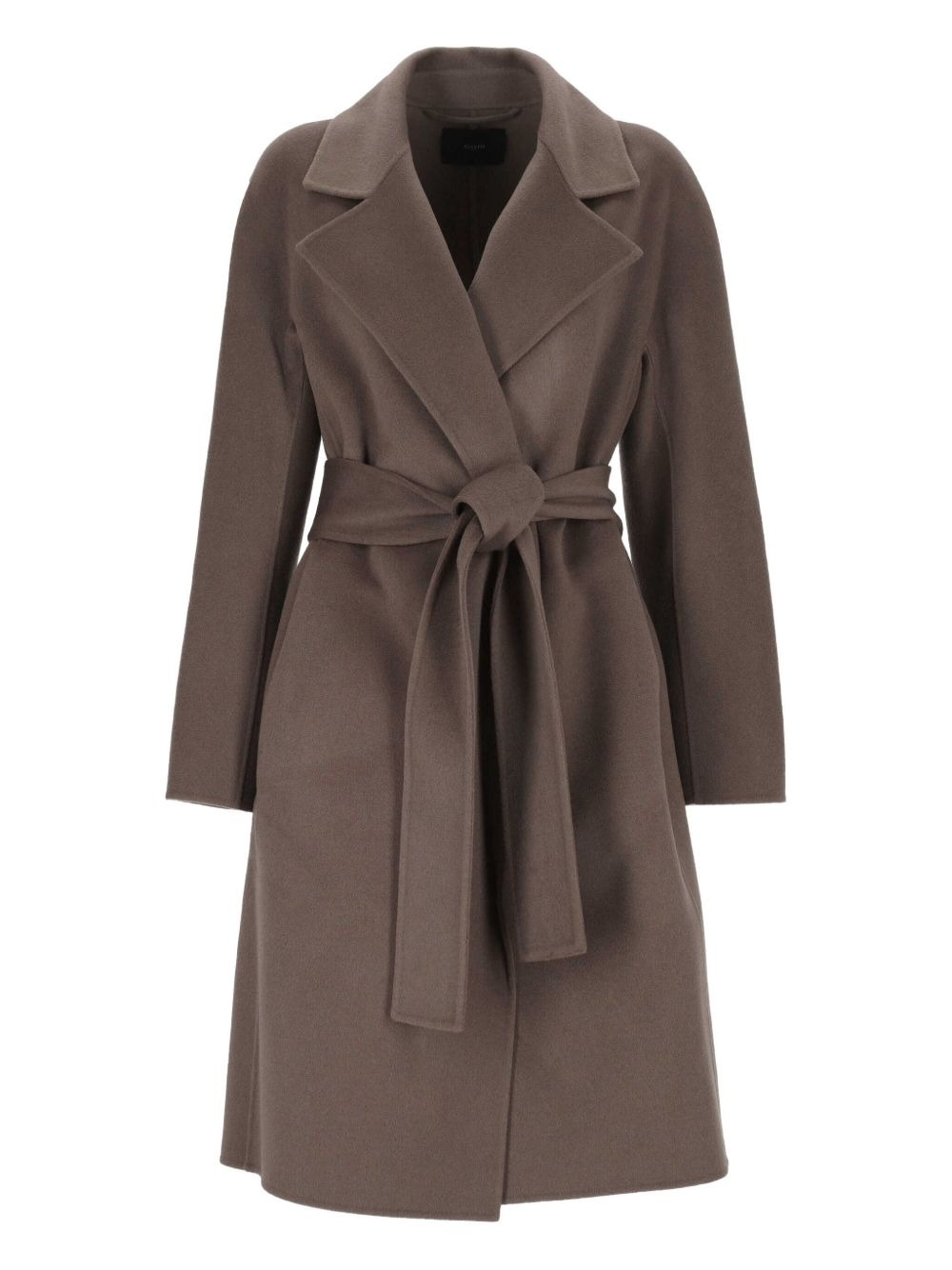belt-fastening coat Highlights - Brown - Belt fastening - Long sleeves - Peak lapel - Welt pockets Imported Composition Wool 80%, Cashmere 20% Washing instructions Read Manufacturer Guidelines