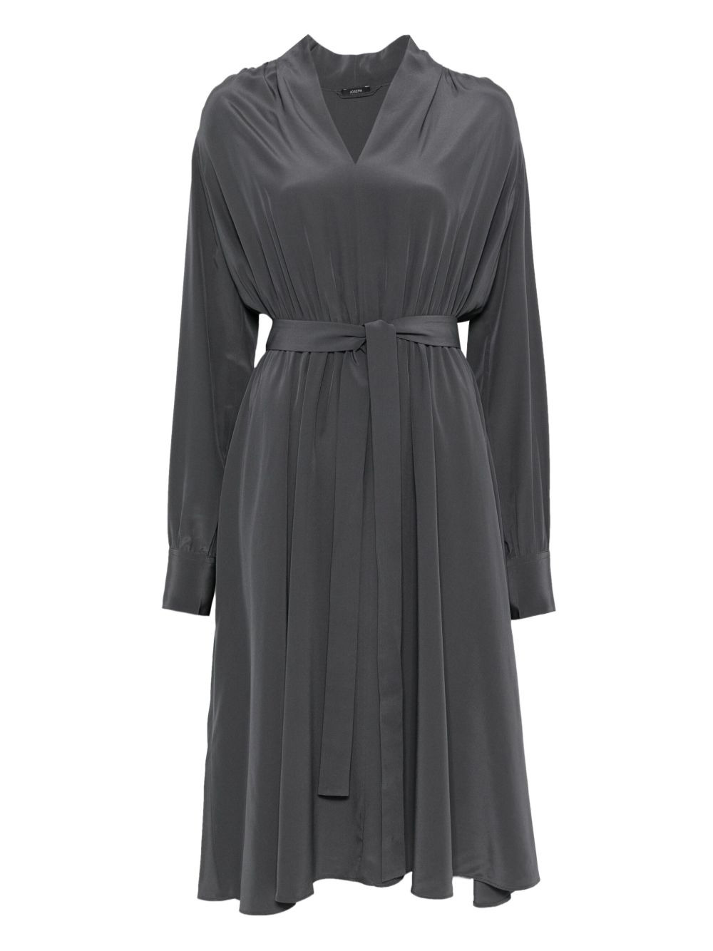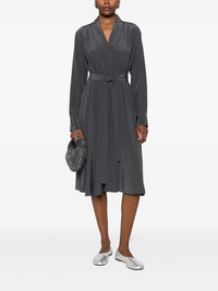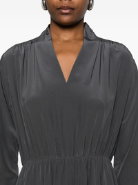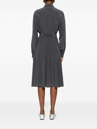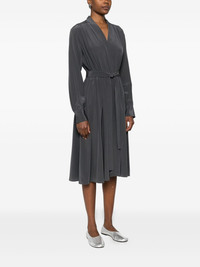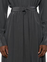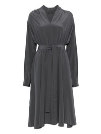 belted silk dress Highlights - Grey - Silk - V-neck - Long sleeves - Buttoned cuffs - Detachable waist belt - Gathered detail Imported Composition Silk 100% SIZE & FIT Model measurements Height 5 ft 11 in(1.8 m) Bust/Chest 31.49 in(80 cm) Hips 36.61 in(93 cm) Waist 24.4 in(62 cm) Washing instructions Read Manufacturer Guidelines