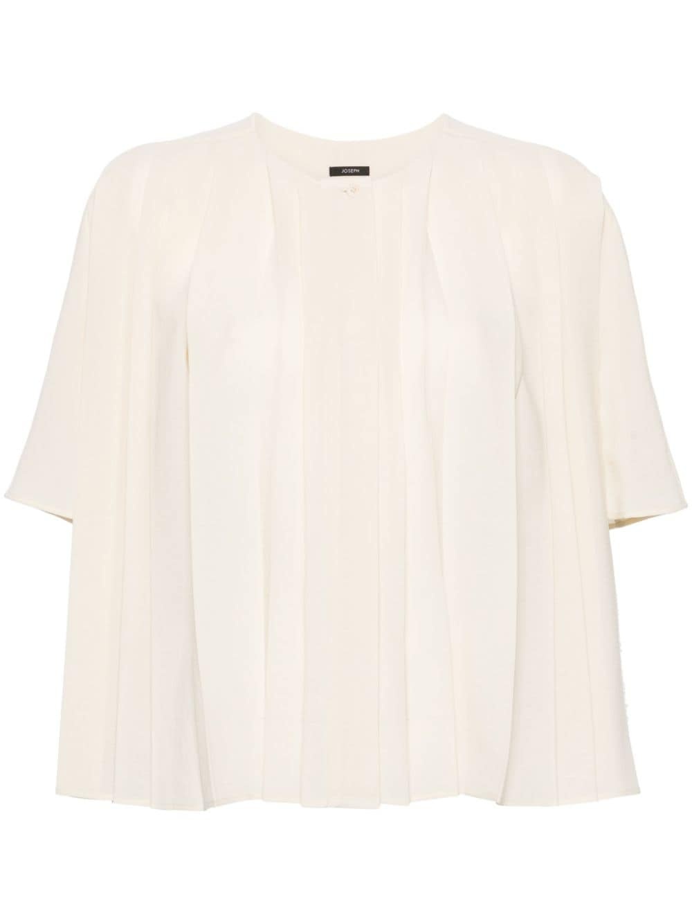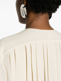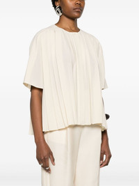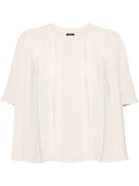 Bouloi collarless pleated blouse Highlights - Ivory white - Interlock weave - Semi-sheer construction - Fully pleated - Collarless - Concealed front button fastening - Short sleeves - Side slits - Straight hem - Unlined Imported Composition Polyester 100%, Cotton 70%, Silk 30% SIZE & FIT Model measurements Height 5 ft 11 in(1.8 m) Bust/Chest 31.49 in(80 cm) Hips 36.61 in(93 cm) Waist 24.4 in(62 cm) FittingInformation Designed for a relaxed fit, this piece allows for comfort and movement when worn Made from a midweight non-stretch fabric This piece fits true to size – take your usual size