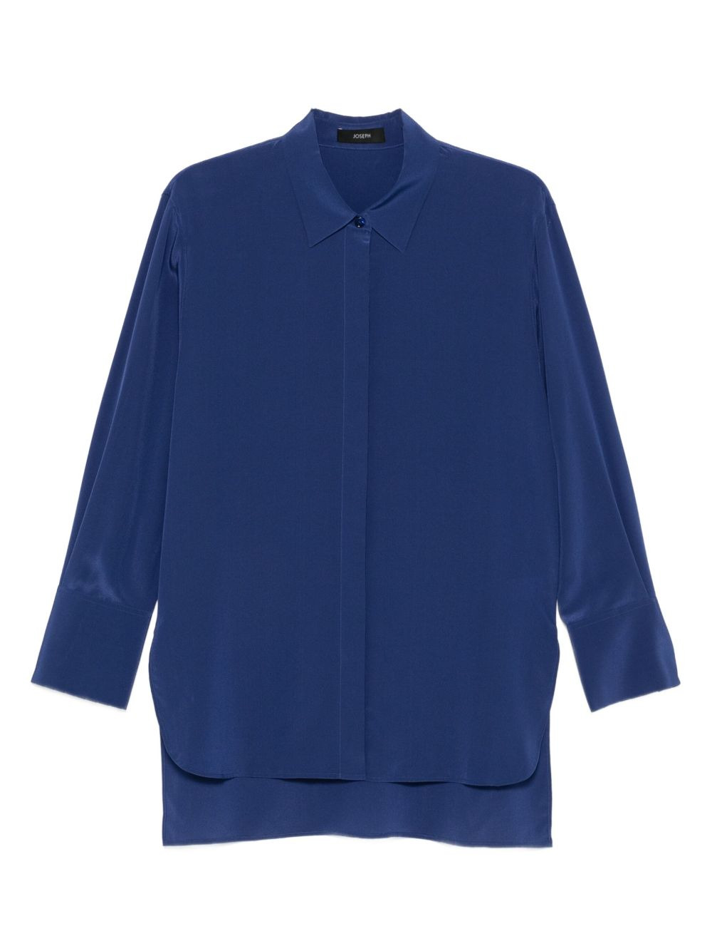 button-down silk shirt Highlights - Blue - Silk - Button fastening - Curved hem - Collared neck Imported Composition Silk 100% SIZE & FIT Model measurements Height 5 ft 10 in(1.77 m) Bust/Chest 33.07 in(84 cm) Hips 37 in(94 cm) Waist 24.8 in(63 cm) Washing instructions Dry Clean Only