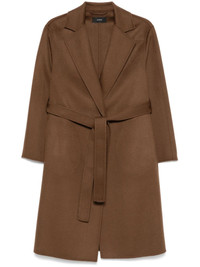 Cenda coat Highlights - Chestnut brown - Wool-cashmere blend - Non-brushed fleece - Open front - Notched lapels - Long sleeves - Belt loops - Detachable waist belt - Two side slit pockets - Straight hem - Mid-length Imported Composition Lining: Polyester 55%, Viscose 45% Outer: RWS Wool 80%, Cashmere 20% SIZE & FIT Model measurements Height 5 ft 11 in(1.8 m) Bust/Chest 31.49 in(80 cm) Hips 36.61 in(93 cm) Waist 24.4 in(62 cm) FittingInformation Designed to be unstructured, offering a loose fit throughout The tie fastening gives an adaptable and personalised fit Made from a midweight non-stretch fabric