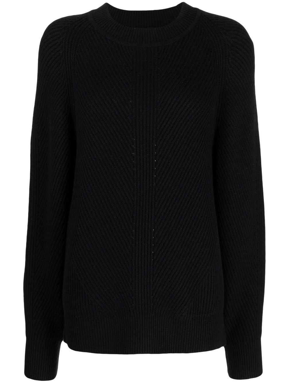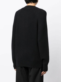 crew-neck knitted sweater black cotton-wool blend crew neck long sleeves Imported Composition Cotton 50%, Wool 40%, Cashmere 10% SIZE & FIT Model measurements Height 5 ft 10 in(1.77 m) Bust/Chest 31.49 in(80 cm) Hips 35.43 in(90 cm) Waist 25.19 in(64 cm) FittingInformation This piece fits true to size. We recommend you get your regular size Cut for a loose fit Made with a mid-weight fabric Washing instructions Hand Wash