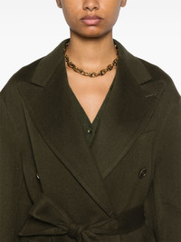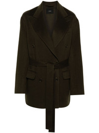 double-breasted blazer Highlights - Dark green - Wool-silk blend - Felted finish - Peak lapels - Long sleeves - Split cuffs - Chest welt pocket - Dart detailing - Two front flap pockets - Detachable waist belt - Central rear vent - Full lining - Straight hem - Double-breasted button fastening Imported Composition Outer: Wool 85%, Silk 15% Lining: Polyester 100% SIZE & FIT Model measurements Height 5 ft 10 in(1.78 m) Bust/Chest 32.67 in(83 cm) Hips 35.43 in(90 cm) Waist 23.22 in(59 cm) FittingInformation Designed to be unstructured, offering a loose fit throughout The tie fastening gives an adaptable and personalised fit Made from a midweight non-stretch fabric This piece fits true to size – take your usual size Washing instructions Dry Clean Only