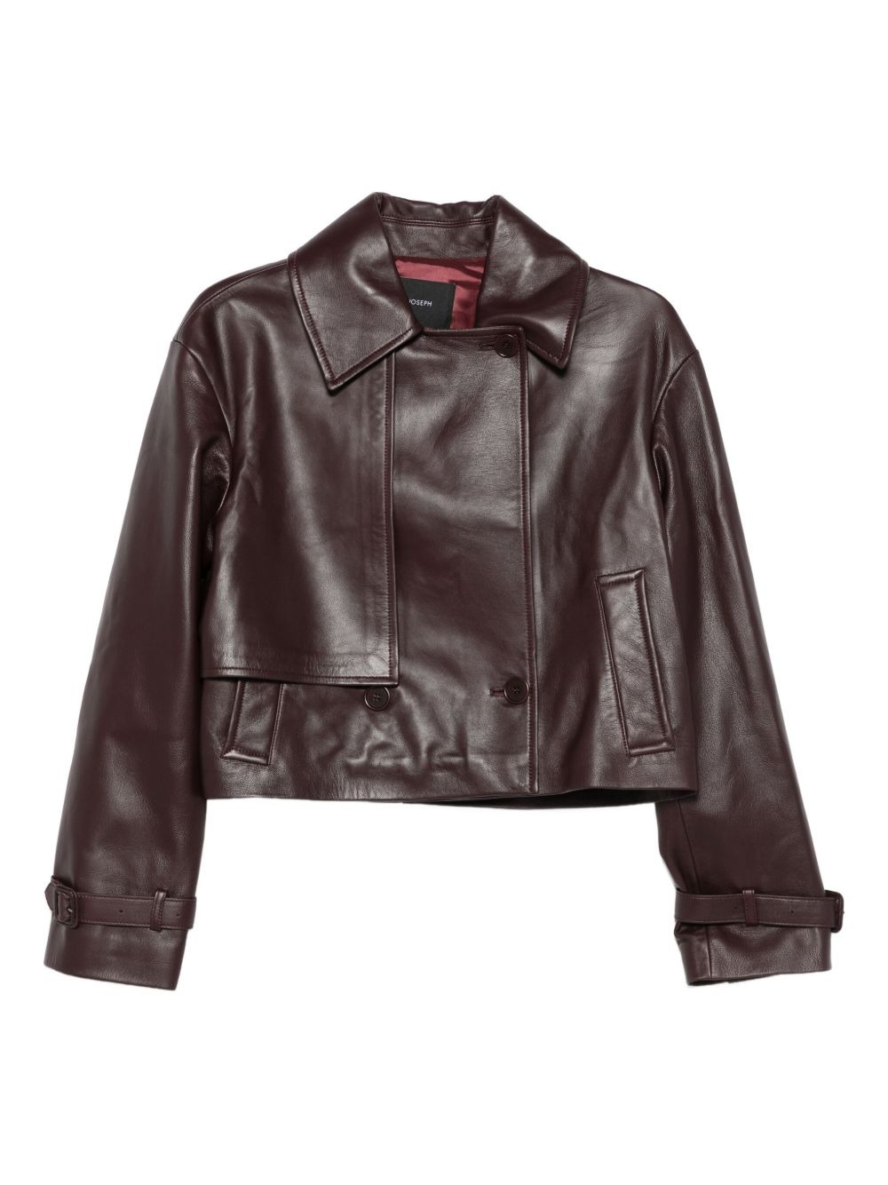 double-breasted leather jacket Highlights - Red - Leather construction - Double-breasted closure - Cropped hem Imported Composition Calf Leather 100% SIZE & FIT Model measurements Height 5 ft 9 in(1.75 m) Bust/Chest 34.64 in(88 cm) Hips 36.61 in(93 cm) Waist 26.37 in(67 cm) Washing instructions Read Manufacturer Guidelines