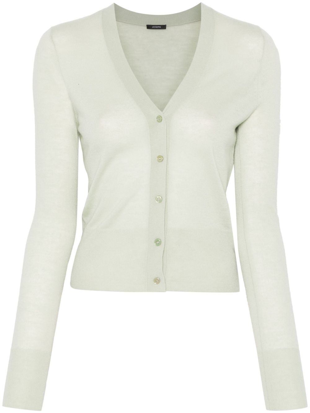 fine-knit cardigan Highlights - Pastel green - Front button fastening - Ribbed cuffs and hem - V-neck - Long sleeves Imported Composition Cashmere 100% Washing instructions Dry Clean Only