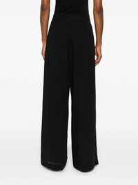 Forest trousers Highlights - Black - Wool blend - Concealed fly and button fastening - Mid-rise - Pleat detailing - Two side inset pockets - Dart detailing - Wide leg Imported Composition Outer: Wool 74%, Polyester 26% Lining: Cotton 100% SIZE & FIT FittingInformation Designed with a wide-leg cut, these trousers allow for a close fit at the waist and offer a loose and roomy fit over the leg Made from a lightweight non-stretch fabric