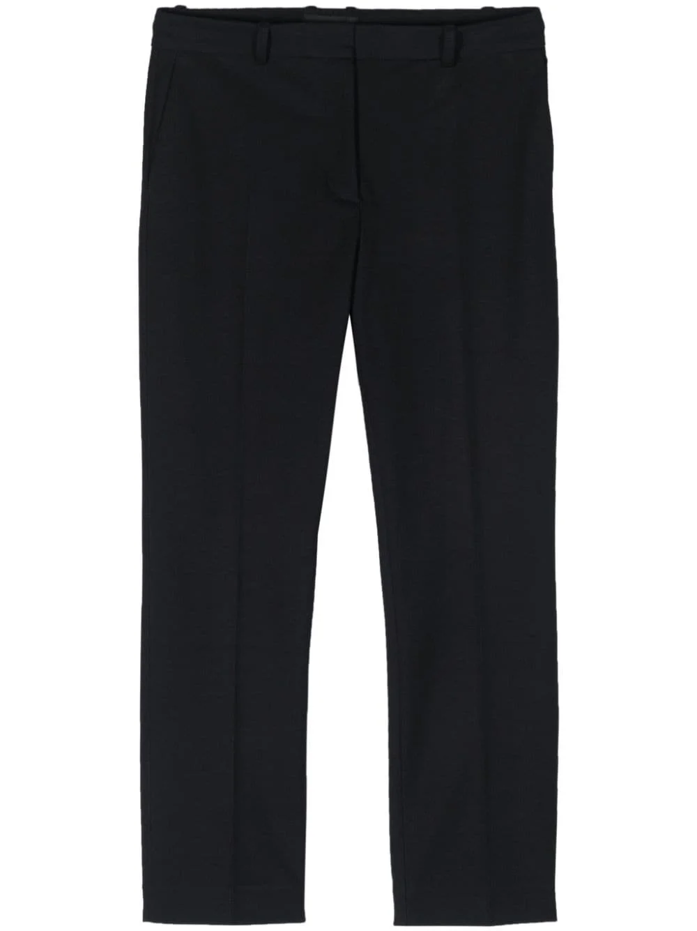 Gabardine Coleman tailored trousers JOSEPH's navy-blue Coleman trousers are part of its Foundation Collection, which it describes as ‘an ongoing exploration into wardrobe classics.’ They’re cut from stretch gabardine to sit at the waist before falling to straight legs that hit at the ankle. Pressed creases lend a smart tailored finish. Highlights - Navy blue - Gabardine weave - Belt loops - Pressed crease - Concealed front fastening - Tailored cut - Two side slit pockets - Two rear button-fastening jetted pockets Imported Composition Outer: Viscose 53%, Cotton 42%, Elastane 5% Lining: Acetate 68%, Polyester 32% SIZE & FIT Model measurements Height 5 ft 10 in(1.79 m) Bust/Chest 31.49 in(80 cm) Hips 35.03 in(89 cm) Waist 23.62 in(60 cm) Washing instructions Dry Clean Only
