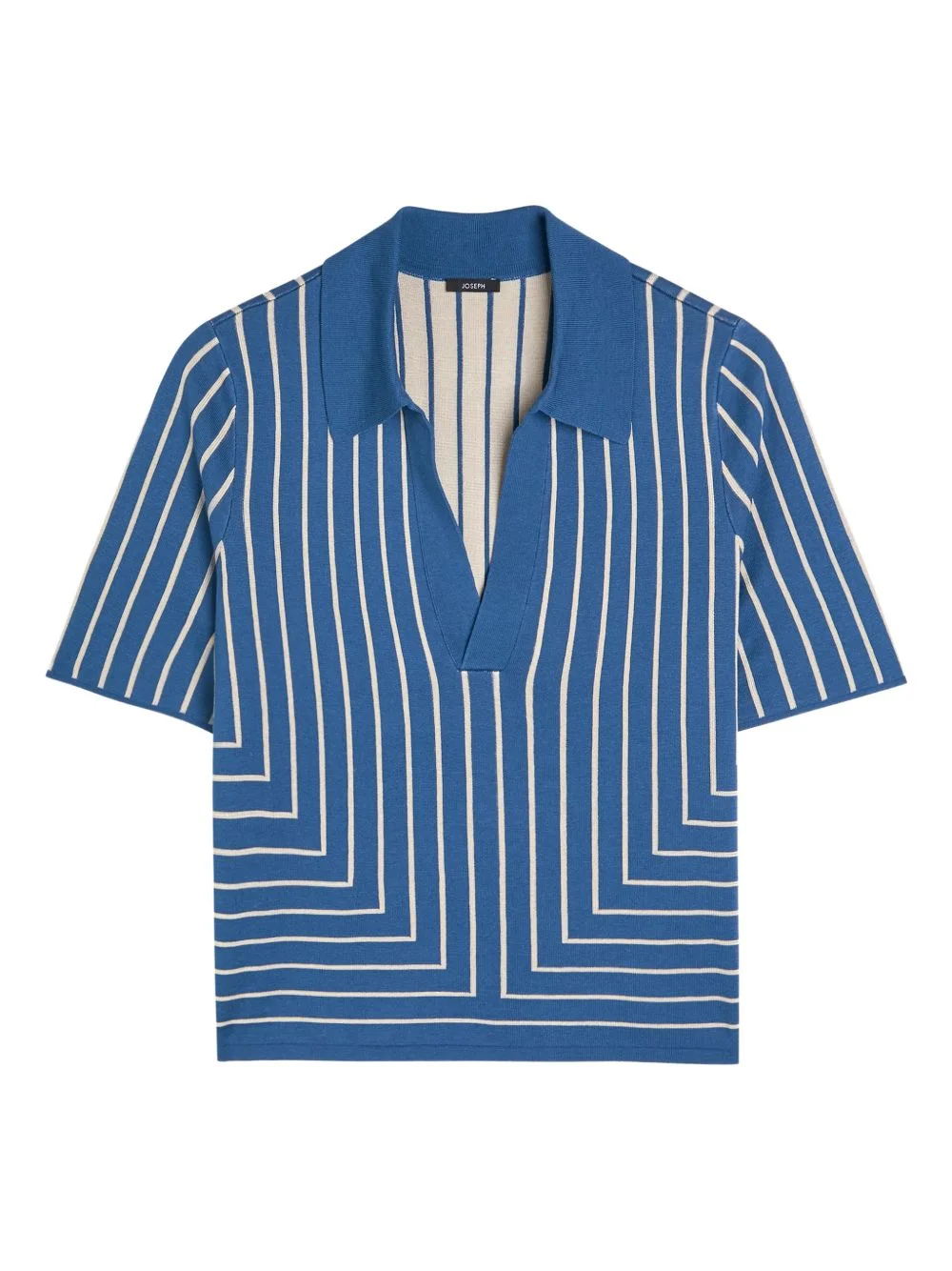 geometric-pattern polo top Highlights - Blue - Geometric pattern - V-neck - Short sleeves Imported Composition Fabric 100% Washing instructions Read Manufacturer Guidelines