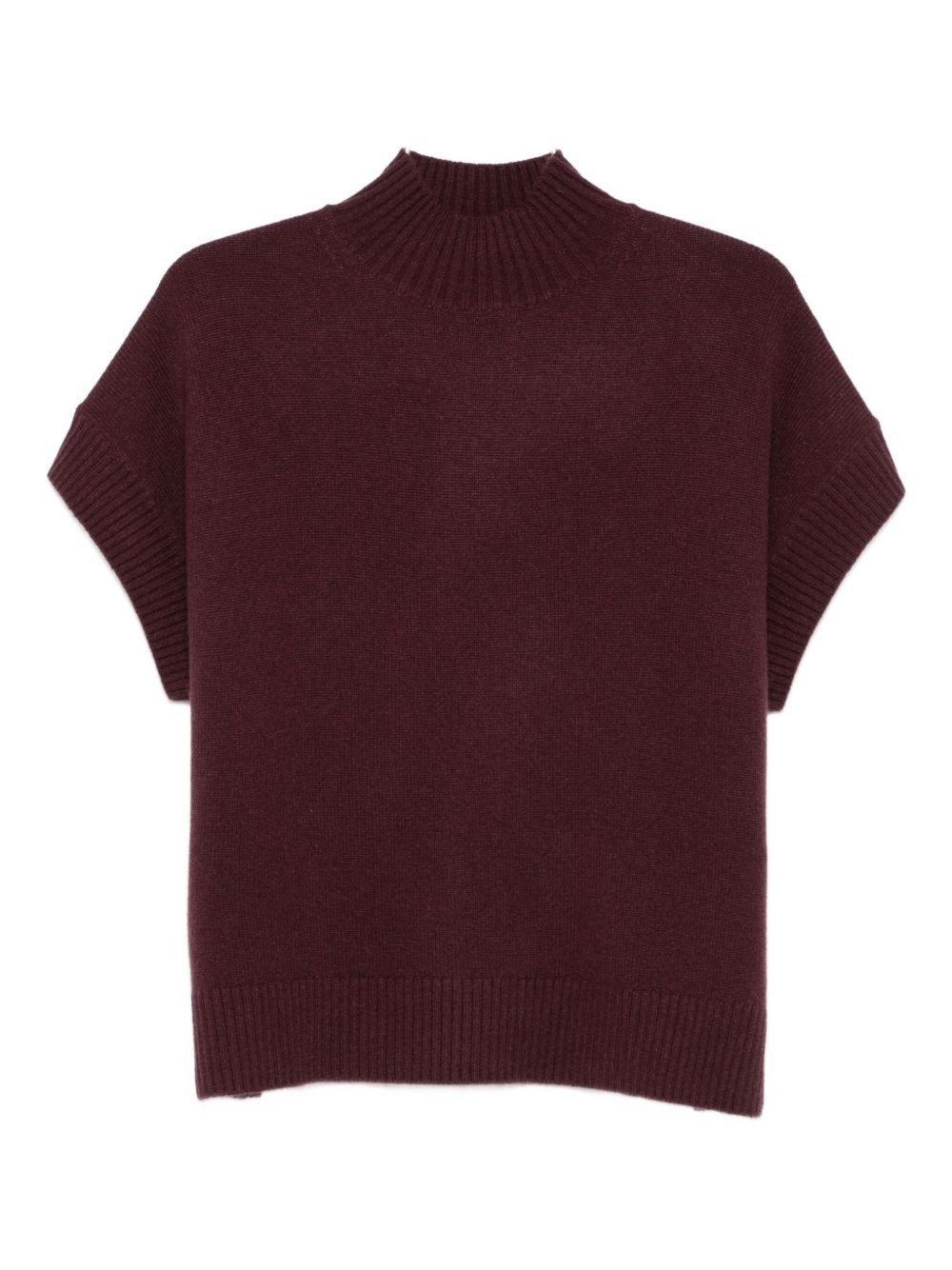 high-neck knitted top Highlights - Maroon - High neck - Short sleeves - Ribbed hem - Ribbed cuffs Imported Composition Cashmere 100% Washing instructions Read Manufacturer Guidelines
