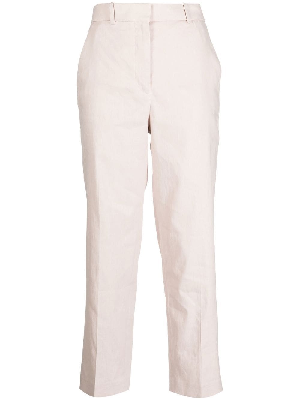 high waist cropped trousers light pink linen/flax blend concealed front fastening belt loops two side inset pockets two rear welt pockets pressed crease cropped leg Imported Composition Body: Linen/Flax 66%, Cotton 32%, Elastane 2% SIZE & FIT Model measurements Height 5 ft 11 in(1.8 m) Bust/Chest 28.34 in(72 cm) Hips 35.43 in(90 cm) Waist 23.62 in(60 cm) Measurement FRONT RISE 12.2 in(31 cm) WAIST 30.7 in(78 cm) HIPS 36.22 in(92 cm) FittingInformation This piece fits true to size. We recommend you get your regular size Designed to be fitted at the waist and hips, loose over the leg Made with a mid-weight stretch fabric