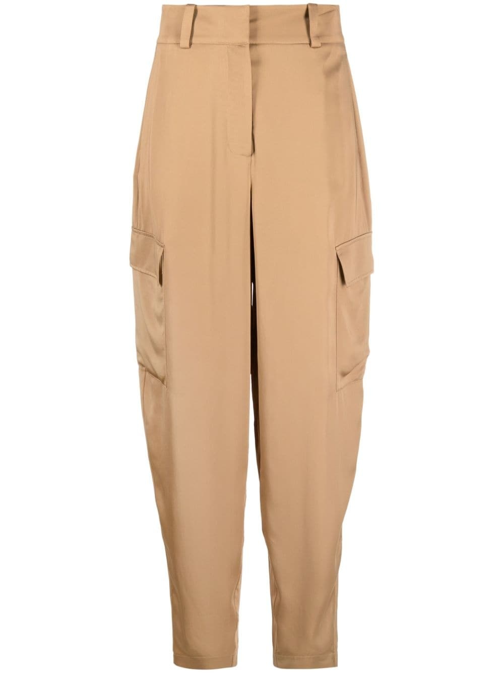 high-waisted cargo trousers Highlights - Beige - High waist - Concealed front fastening - Belt loops - Two side cargo pockets - Rear flap pocket Imported Composition Lining: Polyester 55%, Viscose 45% Outer: Viscose 100% SIZE & FIT Model measurements Height 5 ft 11 in(1.8 m) Bust/Chest 31.49 in(80 cm) Hips 36.61 in(93 cm) Waist 24.4 in(62 cm) Measurement INSIDE LEG 32.28 in(82 cm) HIPS 40.55 in(103 cm) WAIST 28.74 in(73 cm) FittingInformation Designed for a tapered fit, these trousers allow for a close fit at the waist and a loose unrestricted fit over the leg with a closer fit towards the ankle Made from a lightweight non-stretch fabric This piece fits true to size – take your usual size