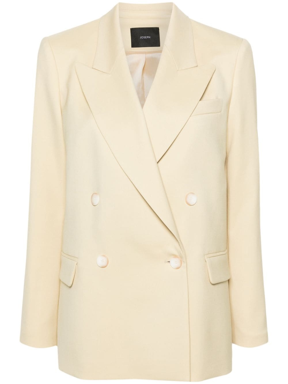 Jaden double-breasted blazer Highlights - Beige - Virgin wool blend - Tailored design - Peak lapels - Double-breasted button fastening - Long sleeves - Buttoned cuffs - Chest welt pocket - Two front flap pockets - Internal jetted pocket - American rear vent - Satin lining Imported Composition Outer: Virgin Wool 98%, Spandex/Elastane 2% Lining: Acetate 68%, Polyester 32% SIZE & FIT Model measurements Height 5 ft 11 in(1.8 m) Bust/Chest 34.25 in(87 cm) Hips 35.82 in(91 cm) Waist 24.8 in(63 cm) Measurement SLEEVE LENGTH 27.95 in(71 cm) LENGTH 27.36 in(69.5 cm) WAIST 38.58 in(98 cm) BUST 38.58 in(98 cm) FittingInformation Designed for a relaxed fit, this piece allows for comfort and movement when worn The internal shoulder pads offer a structured shape Made from a midweight stretch fabric, this piece offers elasticity and flexibility when worn This piece fits true to size – take your usual size