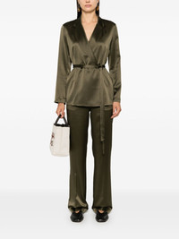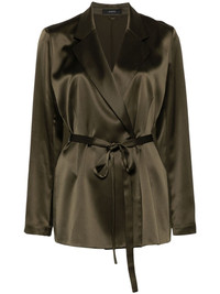 Joubert blazer Highlights - Olive green - Silk - Satin finish - Double-breasted button fastening - Notched lapels - Long sleeves - Belted waist - Unlined - Straight hem Imported Composition Silk 100% SIZE & FIT Model measurements Height 5 ft 11 in(1.8 m) Bust/Chest 33.07 in(84 cm) Hips 37.4 in(95 cm) Waist 25.19 in(64 cm) FittingInformation Designed for a relaxed fit, this piece allows for comfort and movement when worn The tie fastening gives an adaptable and personalised fit Made from a midweight non-stretch fabric Washing instructions Dry Clean Only
