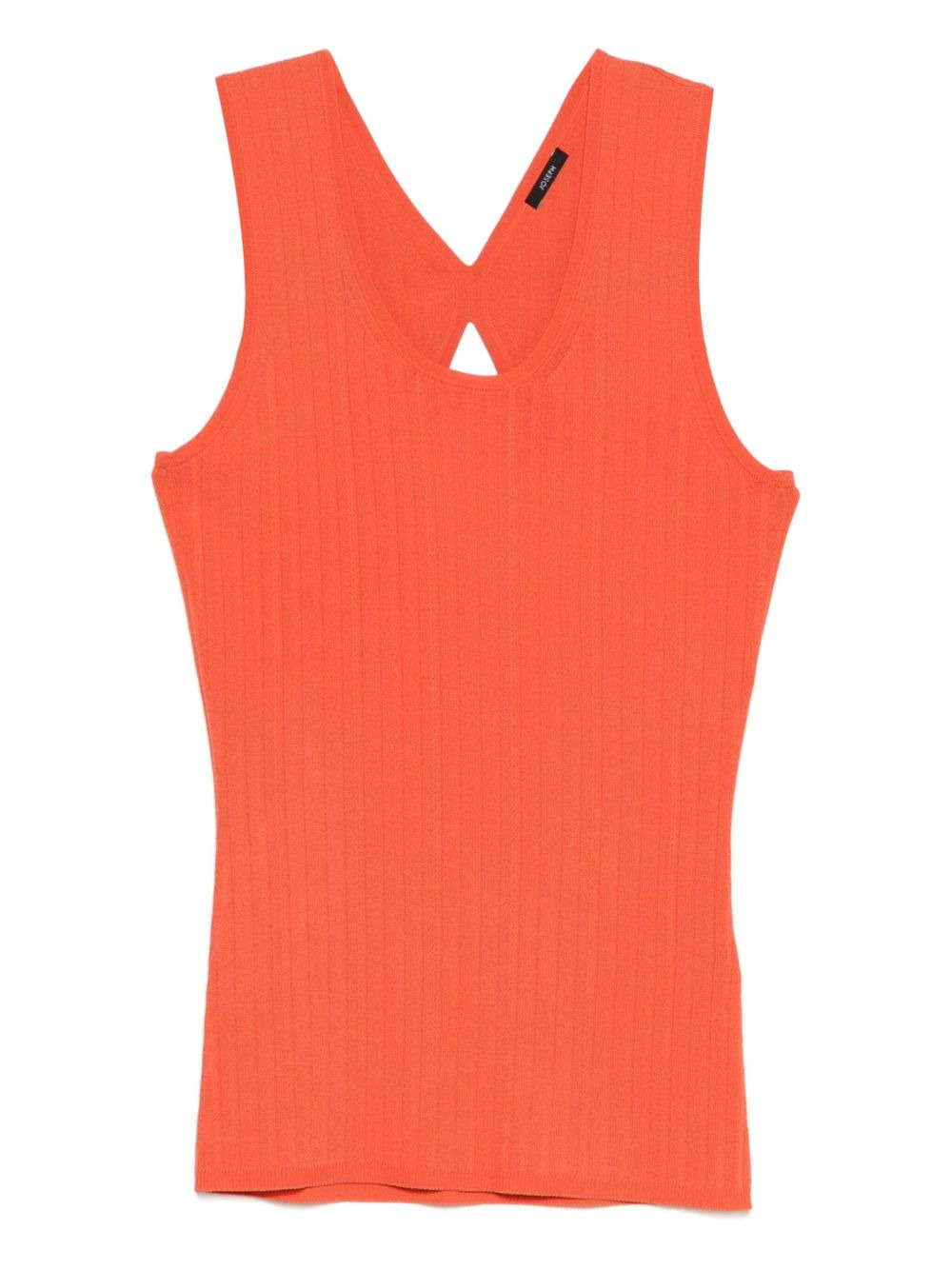 keyhole ribbed top Highlights - Coral orange - Ribbed texture - Sleeveless - Keyhole detail - Straight hem Imported Composition Viscose 80%, Polyamide 20% Washing instructions Hand Wash