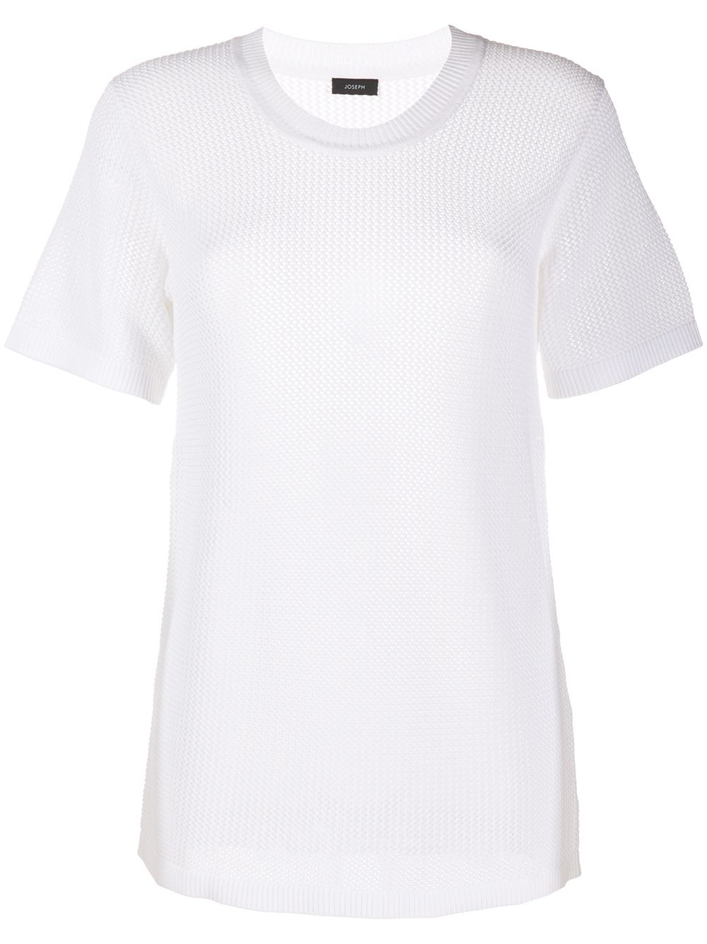 mesh knit T-shirt Summer's almost here. Which means you finally have a reason to wear this mesh knit T-shirt from JOSEPH. Although, it's not as if you really needed the excuse... Featuring a ribbed round neck, short sleeves, a straight hem, a ribbed hem and cuffs and a mesh knit. Imported Composition Cotton 100% SIZE & FIT Model measurements Height 5 ft 10 in(1.78 m) Bust/Chest 33.07 in(84 cm) Hips 35.82 in(91 cm) Waist 25.98 in(66 cm) FittingInformation This piece fits true to size. We recommend you get your regular size Cut for a relaxed fit Made with a mid-weight fabric Washing instructions Hand Wash