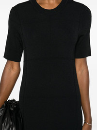 panelled midi dress Highlights - Black - Knitted construction - Panelled design - Crew neck - Short sleeves - Side slits - Straight hem - Mid-length - Unlined Imported Composition Viscose 96%, Polyester 4% SIZE & FIT Model measurements Height 5 ft 10 in(1.77 m) Bust/Chest 34.64 in(88 cm) Hips 35.43 in(90 cm) Waist 24.8 in(63 cm) FittingInformation Designed for a relaxed fit, this piece allows for comfort and movement when worn Made with a midweight knit, this piece offers some stretch This piece fits true to size – take your usual size