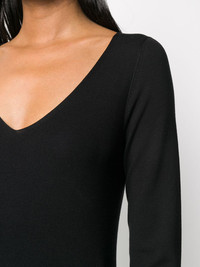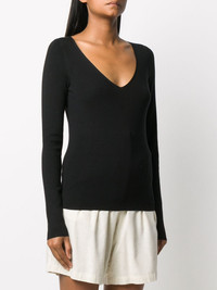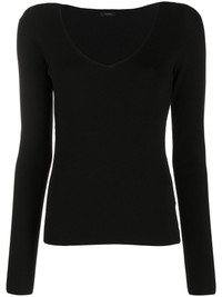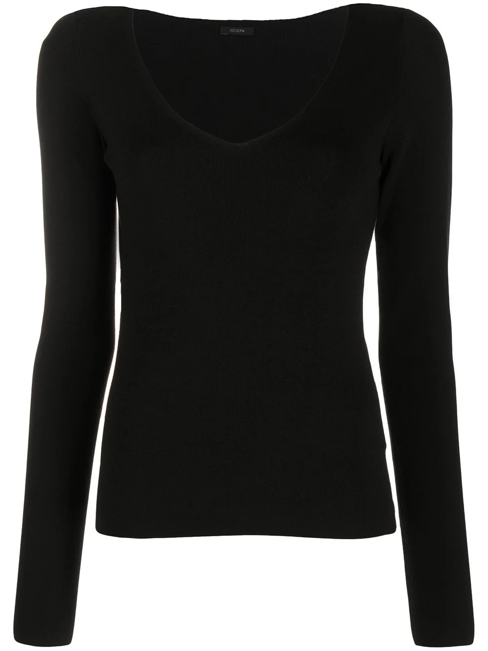 V-neck long-sleeve top Keep things simple with this fitted, ribbed-knit top from JOSEPH. The perfect layering tool, it's designed with long sleeves and a scoop neck. Far from basic. Highlights - Black - Silk-blend - Ribbed knit - Scoop neck - Long sleeves - Straight hem Imported Composition Silk 62%, Polyamide 34%, Elastane 4% SIZE & FIT Model measurements Height 5 ft 10 in(1.79 m) Bust/Chest 32.67 in(83 cm) Hips 35.43 in(90 cm) Waist 25.98 in(66 cm) FittingInformation This piece fits true to size. We recommend you get your regular size Cut for a slim fit Made with a mid-weight stretch fabric Washing instructions Machine Wash