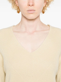 ribbed-knit sweater Highlights - Light beige - Cashmere - Ribbed knit - Plunging v-neck - Drop shoulder - Long sleeves - Straight hem Imported Composition Cashmere 100% SIZE & FIT Model measurements Height 5 ft 9 in(1.74 m) Bust/Chest 34.64 in(88 cm) Hips 36.61 in(93 cm) Waist 26.37 in(67 cm) FittingInformation Designed to be unstructured, offering a loose fit throughout Made with a midweight knit, this piece offers some stretch