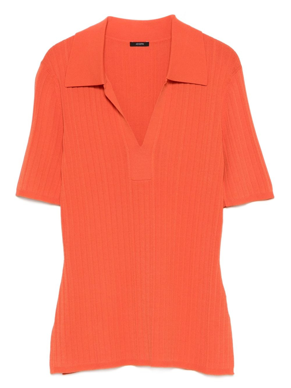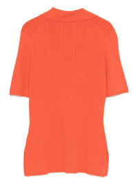 ribbed polo-neck top Highlights - Orange - Ribbed texture - Polo neck - Short sleeves - Side slits Imported Composition Viscose 78%, Polyamide 22% Washing instructions Hand Wash
