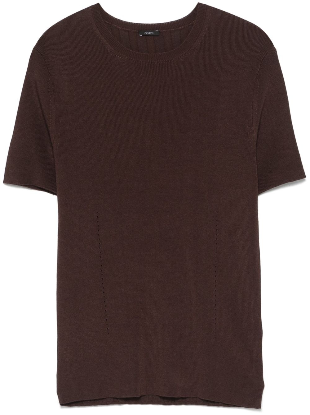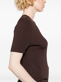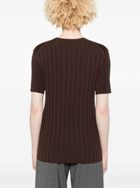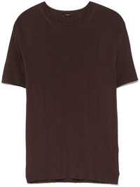 ribbed T-shirt Highlights - Coffee brown - Crew neck - Short sleeves - Straight hem Imported Composition Viscose 58%, Rayon 36%, Polyester 6% SIZE & FIT Model measurements Height 5 ft 9 in(1.75 m) Bust/Chest 34.64 in(88 cm) Hips 36.61 in(93 cm) Waist 26.37 in(67 cm) FittingInformation Designed for a slim fit that sits just away from the body offering a close yet comfortable fit Made with a lightweight knit, this piece offers some stretch