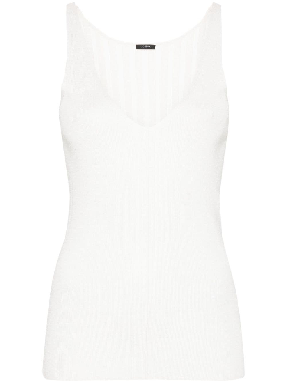 Satiny tank top Highlights - Ivory white - Ribbed knit - Chunky ribbed-knit detailing to the rear - U-neck - Sleeveless - Straight hem - Unlined Imported Composition Viscose 92%, Polyester 6%, Polyamide 2% SIZE & FIT Model measurements Height 5 ft 11 in(1.8 m) Bust/Chest 33.07 in(84 cm) Hips 37.4 in(95 cm) Waist 25.19 in(64 cm) FittingInformation Designed for a close fit throughout Made with a midweight knit, this piece offers some stretch This piece fits true to size – take your usual size