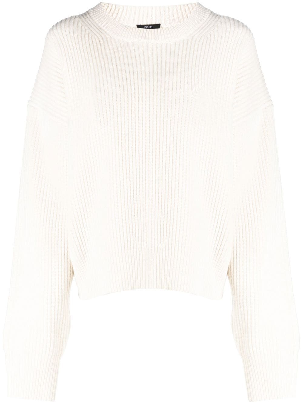 round-neck knitted jumper Showing off the brand's sleek and minimal design, this jumper from JOSEPH arrives in an ivory-white hue enhanced with fine-knit detailing. This model is crafted from merino wool and is finished with a ribbed hem. Imported Composition Merino 100% SIZE & FIT Model measurements Height 5 ft 10 in(1.79 m) Bust/Chest 31.49 in(80 cm) Hips 35.03 in(89 cm) Waist 23.62 in(60 cm) FittingInformation This piece fits true to size. We recommend you get your regular size Cut for a loose fit Made with a mid-weight fabric