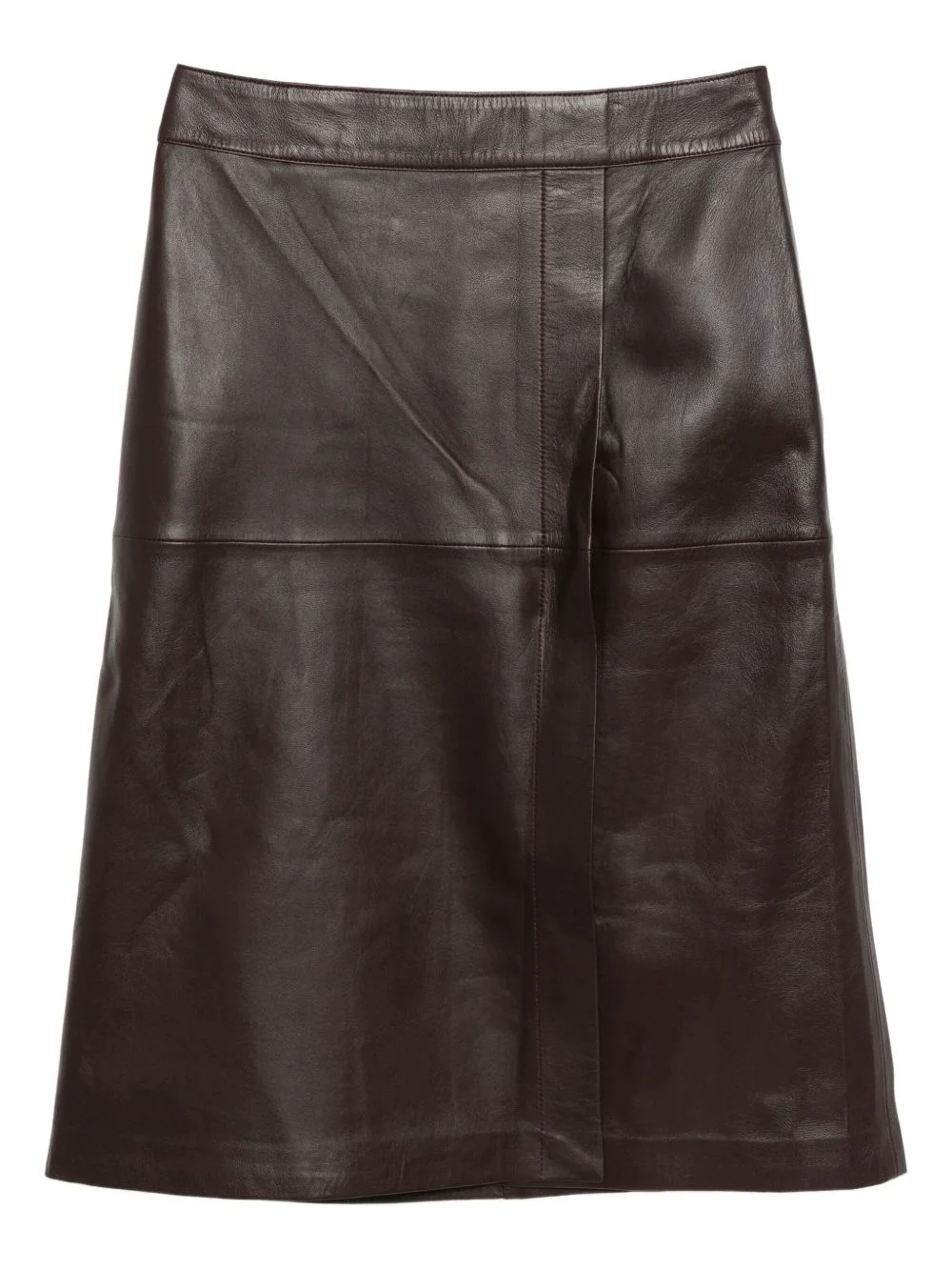 Sevres Nappa leather skirt Highlights - Dark brown - Side zip fastening - Front slit - Straight hem Imported Composition Lining: Viscose 100% Outer: Lambskin 100% Washing instructions Specialist Cleaning