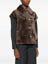 shearling jacket Highlights - Brown - Shearling - Front button fastening - Sleeveless - Side patch pockets - Long sleeves Imported Composition Sheepskin 100%, Sheep Skin/Shearling 100% SIZE & FIT Model measurements Height 5 ft 10 in(1.78 m) Bust/Chest 31.49 in(80 cm) Hips 37 in(94 cm) Waist 23.62 in(60 cm) Washing instructions Specialist Cleaning