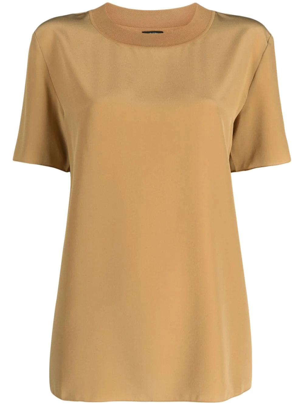 silk-crepe T-shirt JOSEPH imbues this camel-brown T-shirt with a sense of refinement, crafting it from lightweight silk crepe with a ribbed crew neck that nods to its casual roots. Highlights - Camel brown - Silk - Crepe texture - Ribbed trim - Crew neck - Short sleeves - Straight hem Imported Composition Silk 100%, Viscose 76%, Polyamide 21%, Spandex/Elastane 3% SIZE & FIT Model measurements Height 5 ft 10 in(1.78 m) Bust/Chest 31.49 in(80 cm) Hips 35.03 in(89 cm) Waist 23.62 in(60 cm) FittingInformation Designed for a relaxed fit, this piece allows for comfort and movement when worn Made from a midweight stretch fabric, this piece offers elasticity and flexibility when worn This piece fits true to size – take your usual size Washing instructions Hand Wash