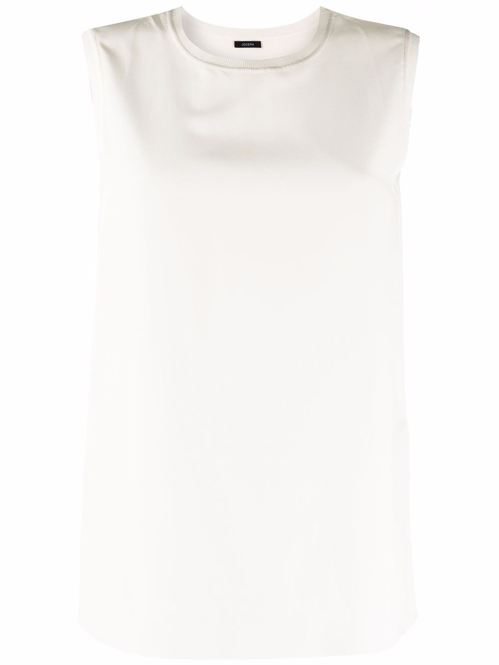 sleeveless tank top white silk round neck sleeveless straight hem Imported Composition Silk 100% SIZE & FIT Model measurements Height 5 ft 10 in(1.78 m) Bust/Chest 33.07 in(84 cm) Hips 36.61 in(93 cm) Waist 24.8 in(63 cm) FittingInformation This piece fits true to size. We recommend you get your regular size Cut for a loose fit Made with a lightweight non-stretch fabric Washing instructions Hand Wash