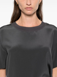 Soie Rubin T-shirt Highlights - Slate grey - Silk - Satin finish - Crepe texture - Crew neck - Short sleeves - Straight hem Imported Composition Silk 100%, Viscose 75%, Polyamide 21%, Elastane 4% SIZE & FIT Model measurements Height 5 ft 9 in(1.75 m) Bust/Chest 32.67 in(83 cm) Hips 36.22 in(92 cm) Waist 24.8 in(63 cm) FittingInformation Designed for a relaxed fit, this piece allows for comfort and movement when worn Made from a lightweight non-stretch fabric This piece fits true to size – take your usual size Washing instructions Hand Wash