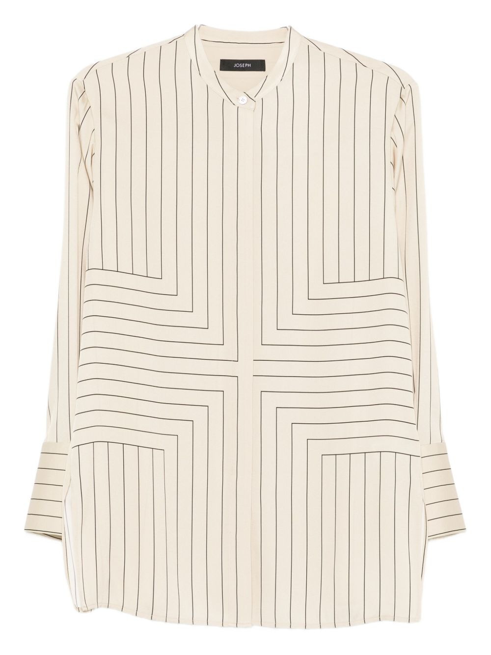 striped-geometric shirt Highlights - Beige - Black stripe pattern - Geometric print - Long sleeves - Button fastening Imported Composition Outer: Silk 50%, Viscose 41%, Elastane 9% Lining: Polyester 100% SIZE & FIT Model measurements Height 5 ft 10 in(1.77 m) Bust/Chest 33.07 in(84 cm) Hips 37 in(94 cm) Waist 24.8 in(63 cm) Washing instructions Dry Clean Only