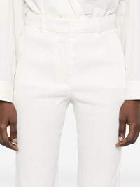 Tafira trousers Highlights - White - Concealed front button, hook and zip fastening Imported Composition Outer: Linen/Flax 57%, Viscose 40%, Elastane 3% Lining: Acetate 68%, Polyester 32% SIZE & FIT Model measurements Height 5 ft 11 in(1.8 m) Bust/Chest 32.67 in(83 cm) Hips 36.22 in(92 cm) Waist 24.4 in(62 cm) FittingInformation Designed with a flared hem, these trousers allow for a close fit at the waist with a slim fit over the leg and widening towards the hem Made from a lightweight stretch fabric, this piece offers elasticity and flexibility when worn Washing instructions Dry Clean Only