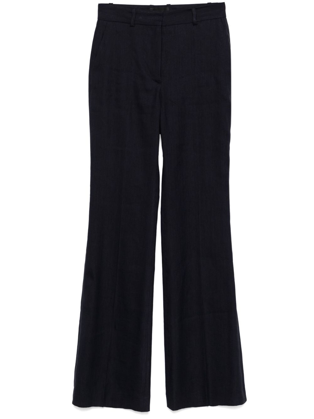 Tafira trousers Highlights - Oxford blue - Concealed front button, hook and zip fastening - Belt loops - Two diagonal pockets to the sides - Rear welt pocket Imported Composition Outer: Linen/Flax 57%, Viscose 40%, Elastane 3% Lining: Acetate 68%, Polyester 32% SIZE & FIT Model measurements Height 5 ft 11 in(1.8 m) Bust/Chest 32.67 in(83 cm) Hips 36.22 in(92 cm) Waist 24.4 in(62 cm) FittingInformation Designed with a flared hem, these trousers allow for a close fit at the waist with a slim fit over the leg and widening towards the hem Made from a midweight stretch fabric, this piece offers elasticity and flexibility when worn