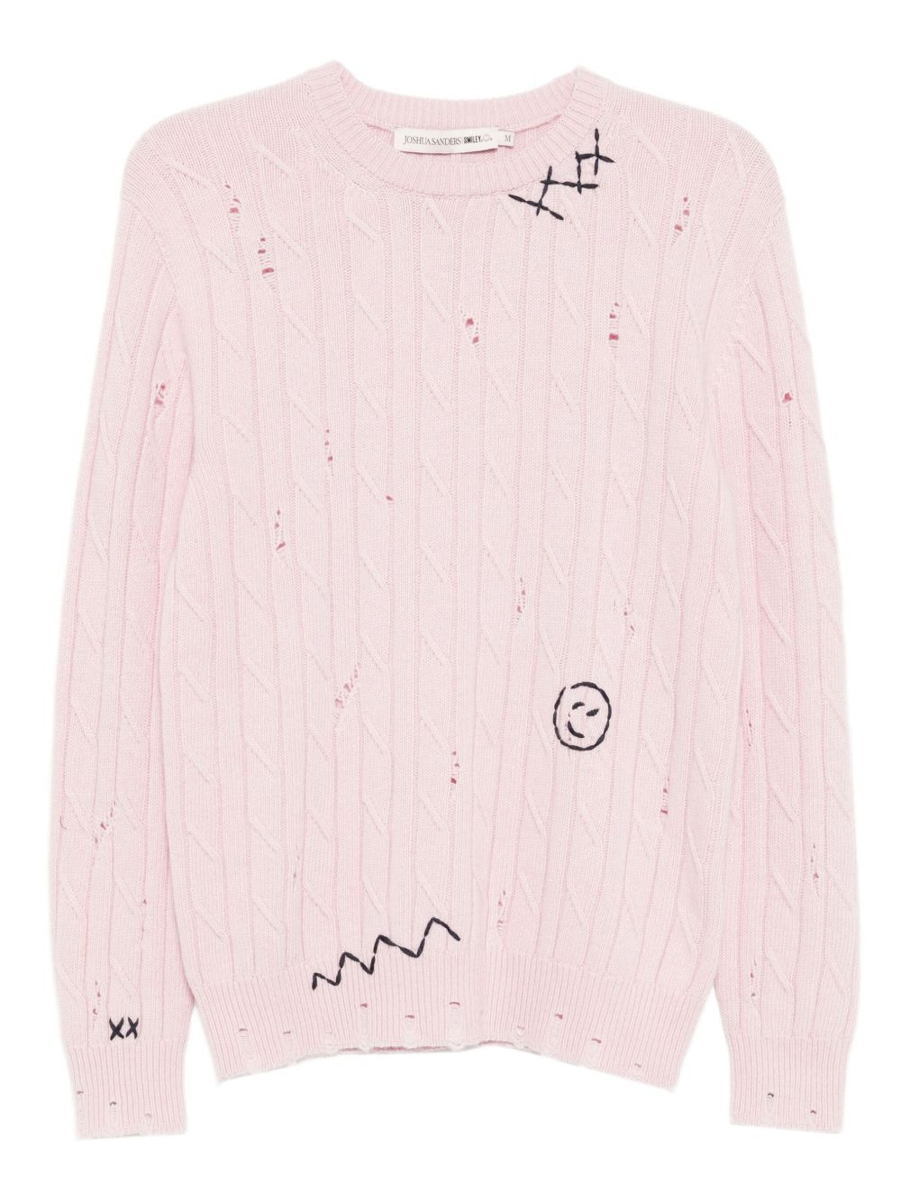 distressed jumper Highlights - Blush pink - Decorative stitching - Crew neck - Ribbed cuffs and hem Made in Italy Composition Merino 40%, Viscose 30%, Polyamide 20%, Cashmere 10% Washing instructions Hand Wash