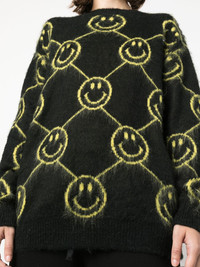 smiley-face intarsia-knit jumper Highlights - Black/yellow - Intarsia knit - Smiley face print - Brushed effect - Round neck - Long sleeves - Straight hem Made in Italy Composition Acrylic 45%, Polyamide 35%, Alpaca 20% SIZE & FIT Model measurements Height 5 ft 10 in(1.79 m) Bust/Chest 32.67 in(83 cm) Hips 34.25 in(87 cm) Waist 24.4 in(62 cm) FittingInformation Designed to be unstructured, offering a loose fit throughout Made with a midweight knit, this piece offers some stretch This piece fits true to size – take your usual size Washing instructions Hand Wash