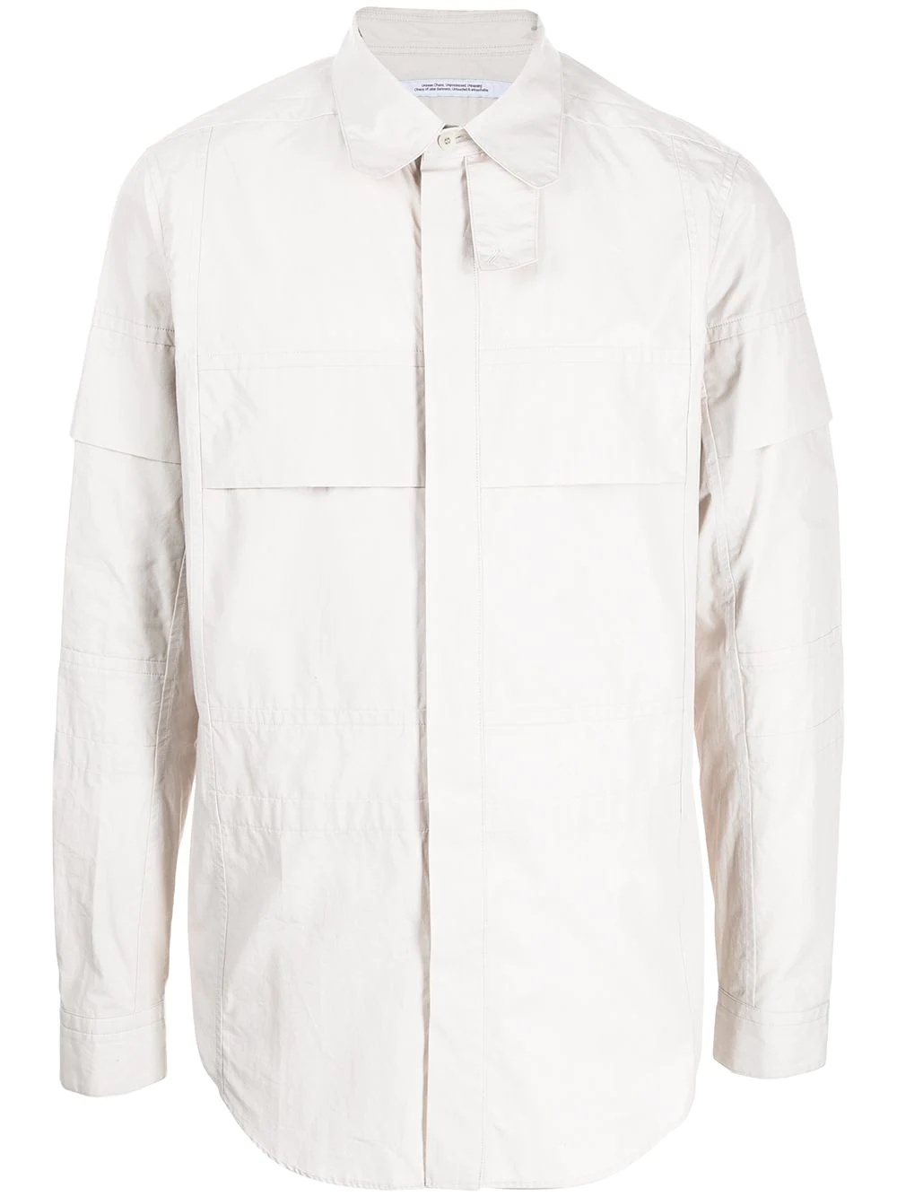 concealed-front fastening shirt white cotton classic collar concealed front fastening long sleeves curved hem Imported Composition Cotton 100% SIZE & FIT Model measurements Height 6 ft 0 in(1.84 m) Bust/Chest 35.43 in(90 cm) Hips 35.82 in(91 cm) Waist 28.74 in(73 cm) FittingInformation This piece fits true to size. We recommend you get your regular size Cut for a loose fit Made with a lightweight non-stretch fabric Washing instructions Hand Wash