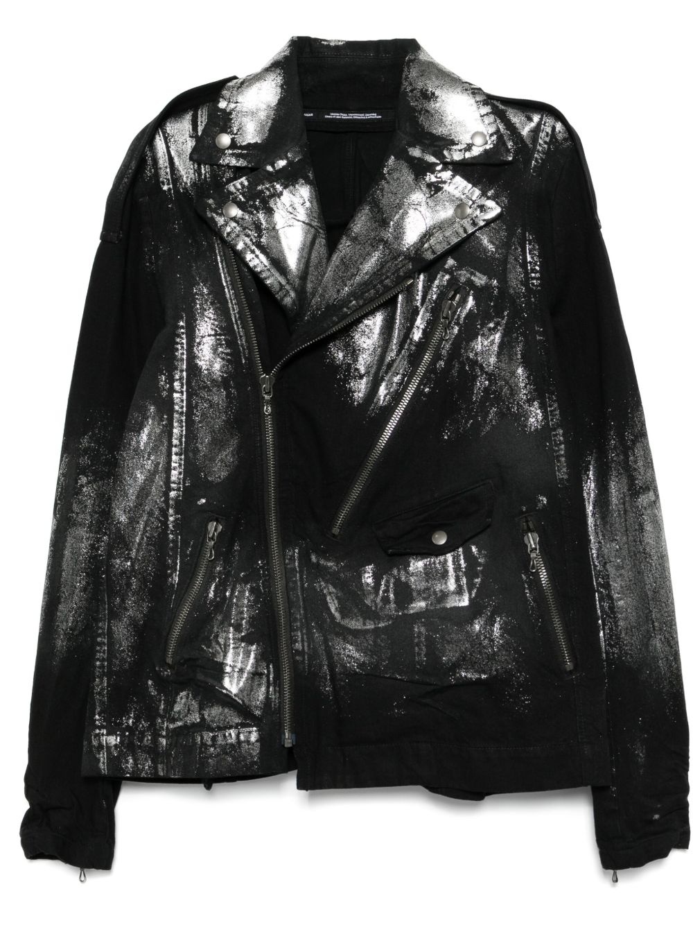 cotton biker jacket Highlights - Black - Front zip fastening - Multiple zip-fastening pockets - Long sleeves Imported Composition Cotton 100% SIZE & FIT Model measurements Height 6 ft 1 in(1.85 m) Bust/Chest 35.43 in(90 cm) Hips 36.22 in(92 cm) Waist 28.74 in(73 cm) FittingInformation Designed to be unstructured, offering a loose fit throughout Sturdy and hard-wearing, this denim piece offers no stretch