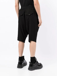 flap-pocket drop-crotch shorts Black cotton/cupro flap-pocket drop-crotch shorts from JULIUS featuring two rear flap pockets, elasticated waistband, drop crotch and below-knee length. Imported Composition Cupro 51%, Cotton 49% SIZE & FIT Model measurements Height 6 ft 0 in(1.83 m) Bust/Chest 37.79 in(96 cm) Hips 37 in(94 cm) Waist 30.31 in(77 cm) FittingInformation This piece fits true to size. We recommend you get your regular size Designed for a slim fit at the waist and loose over the leg Made with a mid-weight stretch fabric Washing instructions Hand Wash
