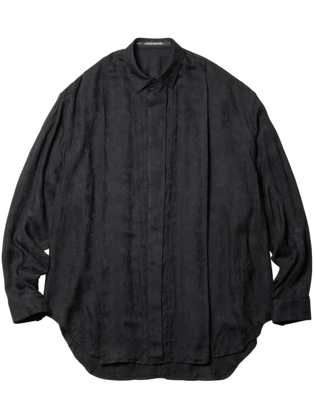 Front Tuck shirt Highlights - Black - Full jacquard - Concealed front fastening - Cutaway collar - Drop shoulder - Extra-long sleeves - Buttoned cuffs - Curved hem Imported Composition Rayon 100%