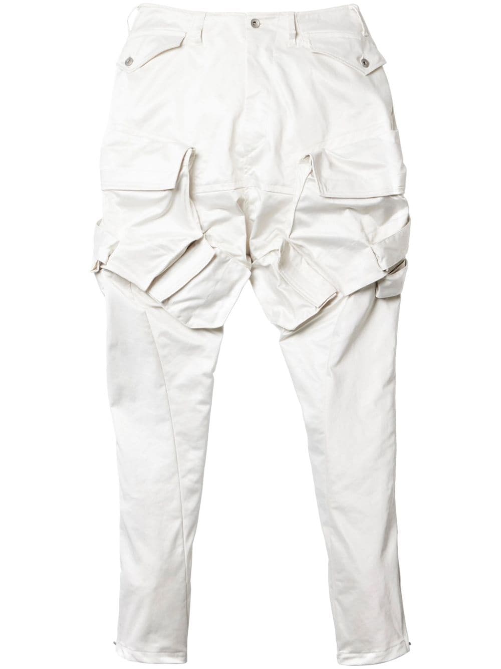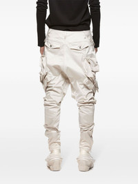 Gasmask cargo trousers Highlights - Off-white - Satin weave - Coated finish - Front button and zip fastening - Mid-rise - Belt loops - Two side flap pockets - Two rear flap pockets - Drop crotch - Multiple cargo pockets - Cuff zips - Tapered leg Imported Composition Polyester 100%