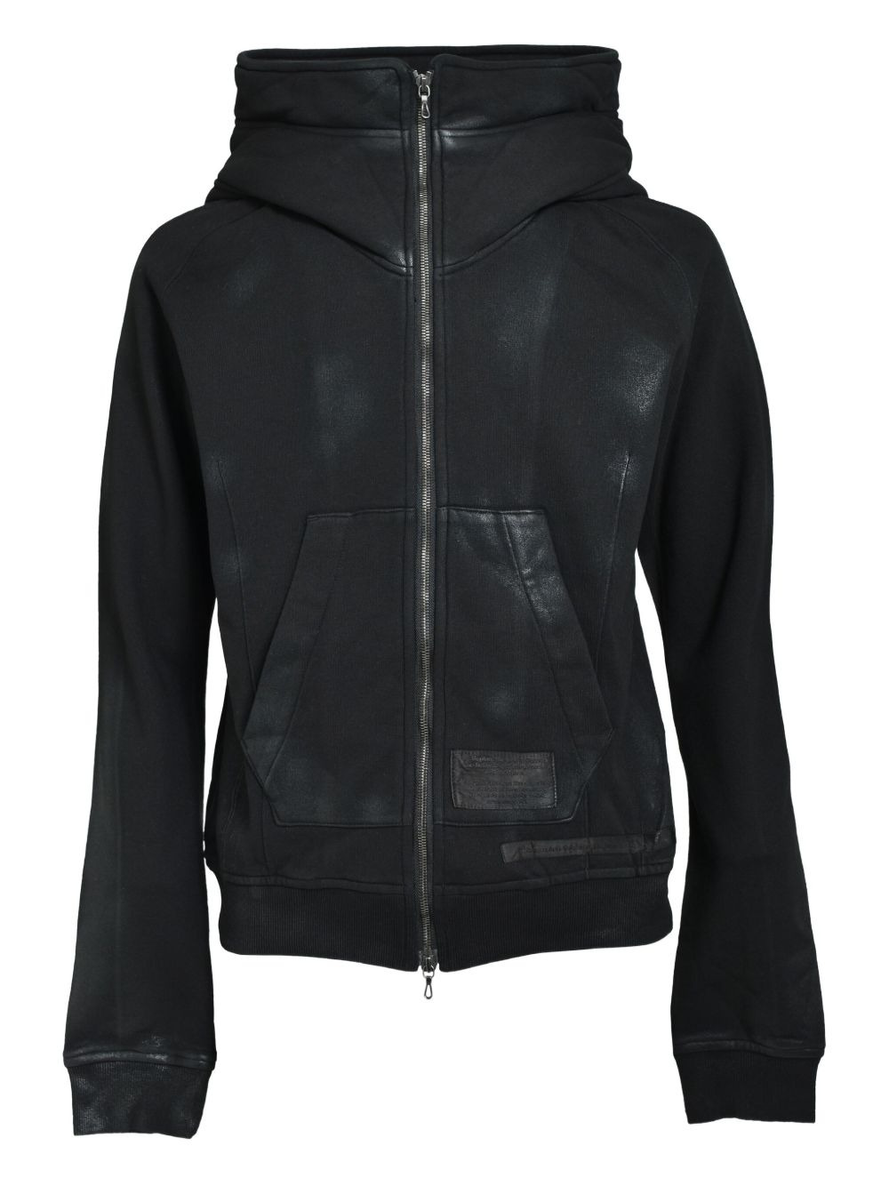 hooded zip jacket Highlights - Black - Front zip fastening - Front pouch pocket - Ribbed hem and cuffs Imported Composition Cotton 100% Washing instructions Read Manufacturer Guidelines
