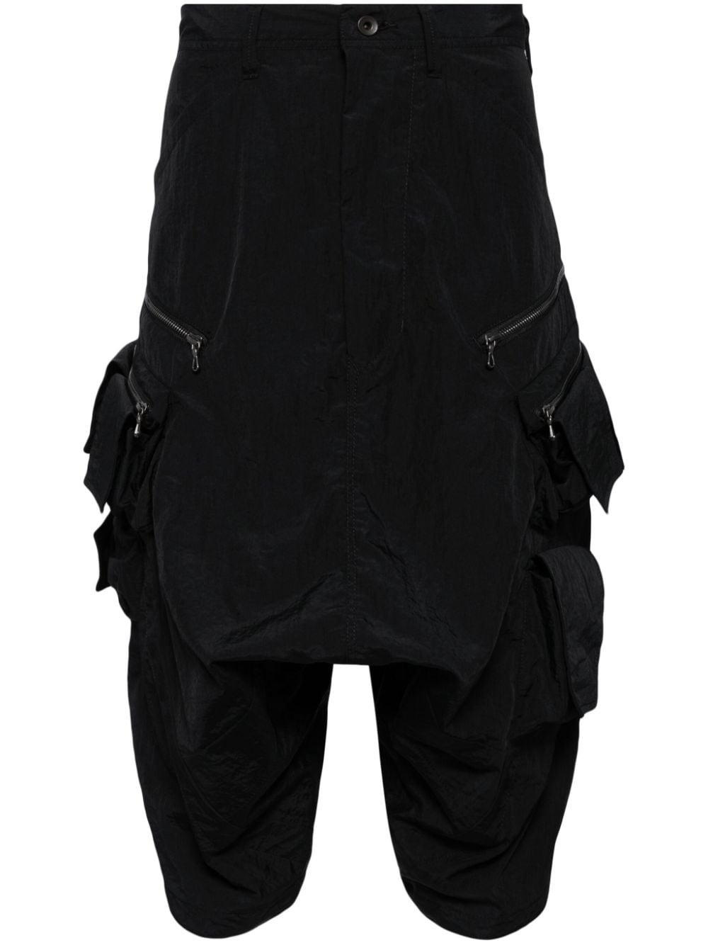 mid-rise drop-crotch cargo shorts Highlights - Black - Technical jersey - Gathered detailing - Mid-rise - Concealed fly and button fastening - Belt loops - Drop crotch - Two side zip-fastening pockets - Two side cargo pockets - Two rear flap pockets - Knee-length Imported Composition Nylon 100% SIZE & FIT Model measurements Height 6 ft 2 in(1.87 m) Bust/Chest 34.25 in(87 cm) Hips 36.22 in(92 cm) Waist 29.52 in(75 cm) FittingInformation Designed with a dropped crotch, offering a loose and relaxed fit Made from a midweight non-stretch fabric This piece fits true to size – take your usual size