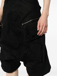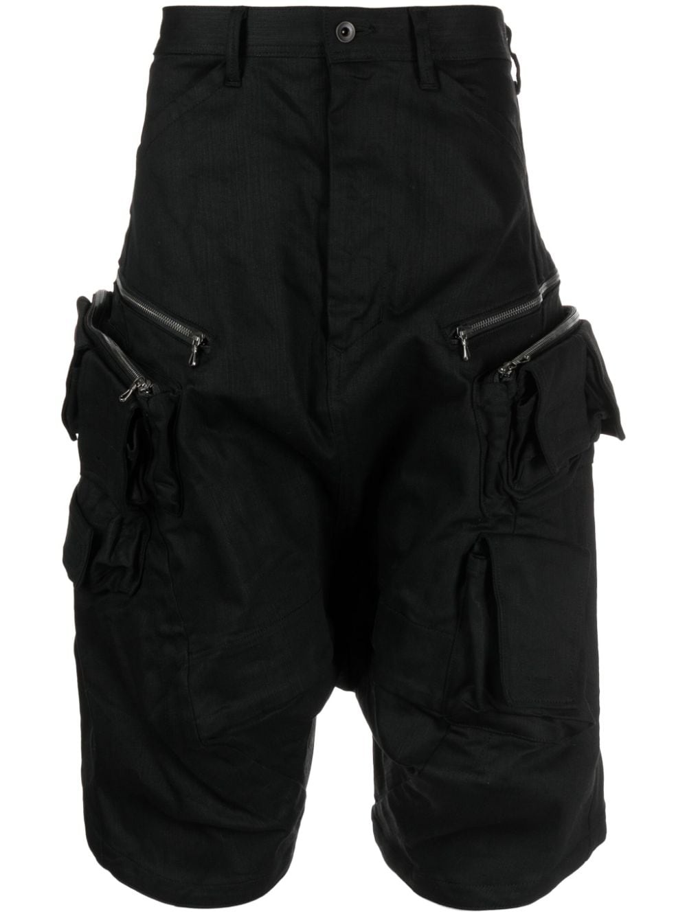 mid-rise drop-crotch shorts Highlights - Black - Cotton blend - Mid-rise - Belt loops - Front button and zip fastening - Two diagonal pockets to the sides - Multiple zip-fastening pockets - Two rear button-fastening pockets Imported Composition Cotton 90%, Polyester 8%, Polyurethane 2% SIZE & FIT Model measurements Height 6 ft 2 in(1.87 m) Bust/Chest 34.25 in(87 cm) Hips 36.22 in(92 cm) Waist 29.52 in(75 cm) FittingInformation Designed with a dropped crotch, offering a loose and relaxed fit Made from a heavyweight non-stretch fabric This piece fits true to size – take your usual size Washing instructions Hand Wash