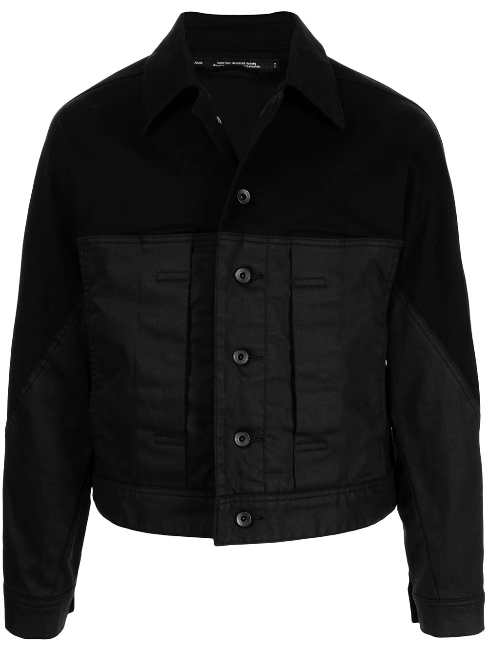 panelled cropped jacket black cotton-blend panelled design tonal stitching classic collar front button fastening long sleeves buttoned cuffs cropped Imported Composition Cotton 97%, Polyurethane 3% SIZE & FIT Model measurements Height 6 ft 0 in(1.84 m) Bust/Chest 35.43 in(90 cm) Hips 35.82 in(91 cm) Waist 28.74 in(73 cm) FittingInformation This piece fits true to size. We recommend you get your regular size Cut for a loose fit Made with a mid-weight fabric Washing instructions Dry Clean Only