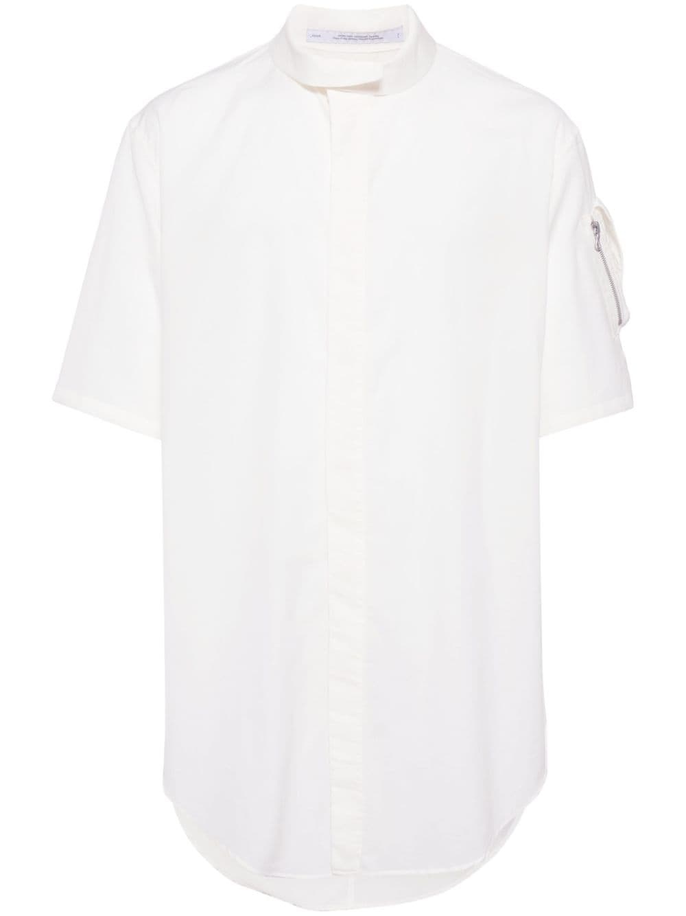 short-sleeve poplin shirt Highlights - Off-white - Poplin texture - Stand-up collar - Front button fastening - Short sleeves - Sleeve zip pocket - Curved hem Imported Composition Nylon 55%, Cotton 32%, Linen/Flax 13% SIZE & FIT Model measurements Height 6 ft 2 in(1.87 m) Bust/Chest 34.25 in(87 cm) Hips 36.22 in(92 cm) Waist 29.52 in(75 cm) FittingInformation Designed to be unstructured, offering a loose fit throughout Made from a midweight non-stretch fabric This piece fits true to size – take your usual size