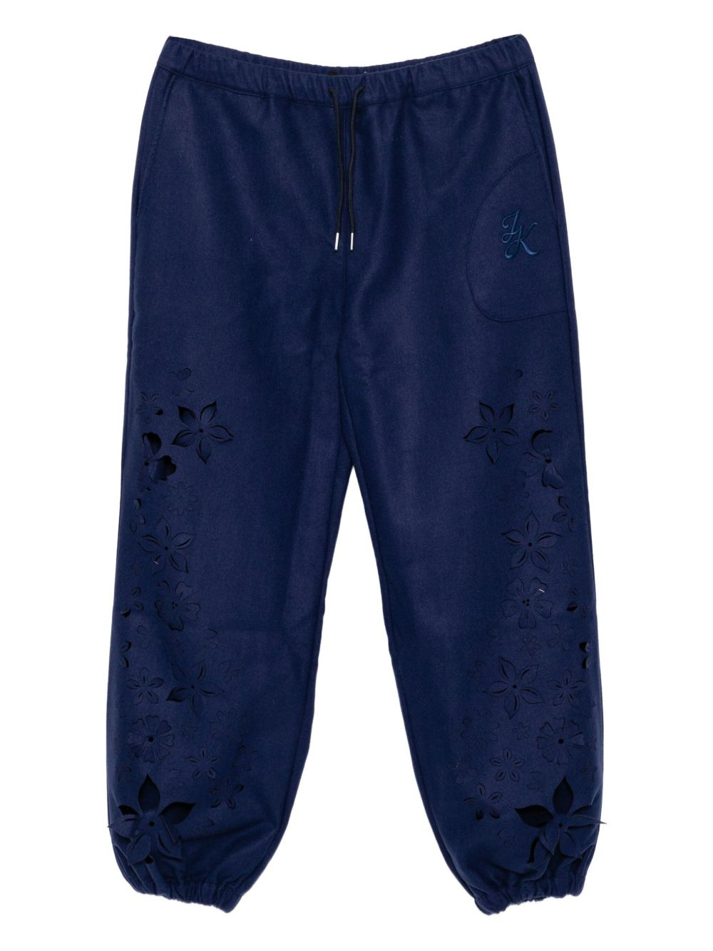 laser-cut flower track pants Highlights - Navy blue - Elasticated drawstring waistband - Two side slash pockets - Elasticated ankles - Embroidered logo to the front Imported Composition Lining: Polyester 100% Outer: Polyester 80%, Rayon 20% Washing instructions Hand Wash