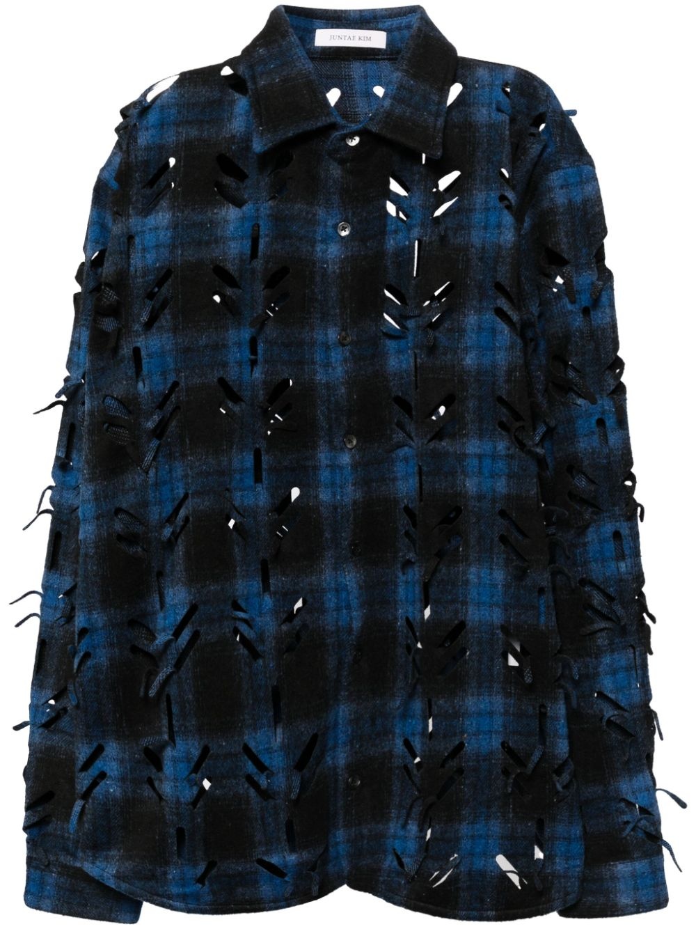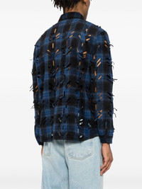 laser-slashed shirt Highlights - Blue/black - Flannel - Laser-cut detail - Front button fastening - Classic collar - Plaid check pattern - Raised seam detail - Long sleeves - Buttoned cuffs - Curved hem Imported Composition Polyester 100% SIZE & FIT Model measurements Height 6 ft 3 in(1.9 m) Bust/Chest 35.03 in(89 cm) Hips 36.61 in(93 cm) Waist 29.13 in(74 cm) FittingInformation Designed for a relaxed fit, this piece allows for comfort and movement when worn Made from a midweight non-stretch fabric